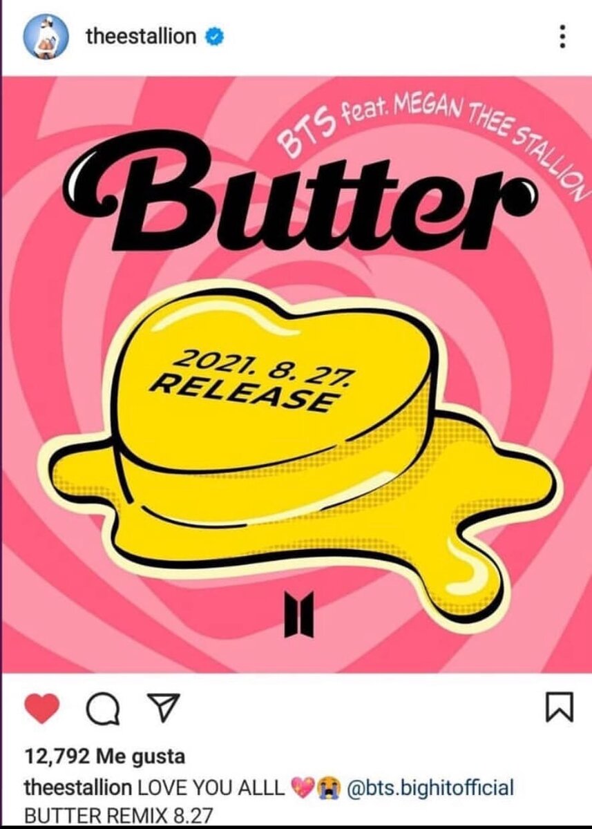 В эту пятницу мальчики порадуют нас новым ремиксом на песню "Butter". На этот раз нас ждёт коллаб с американской рэпершей Megan Thee Stallion. Выход ремикса состоится 27 августа в 7 утра по московскому и украинскому времени, в 10 утра по казахскому времени. Вот что сказал сам лейбл BIGHIT MUSIC: "Butter (feat. Megan Thee Stallion включает неподражаемый реп, фирменные звуки и импровизация трехкратной обладательницы премии Грэмми Megan Thee Stallion с исключительной индивидуальностью BTS в оригинальной песне, чтобы создать более богатый опыт для всех слушателей". До этого лейбл, в котором состоит Меган, занимался вымогательством денег и постоянно откладывал релиз ремикса. Меган записала свою часть еще в начале июля , но ей пришлось судится со своим лейблом, потому что они требовали огромную комиссию с гонорара и без этого отказывались одобрять трек. Меган выиграла суд, поэтому ждём этот прекрасный ремикс с не менее прекрасной Меган!💜💜💜 Подписывайтесь на канал, ставьте лайки!