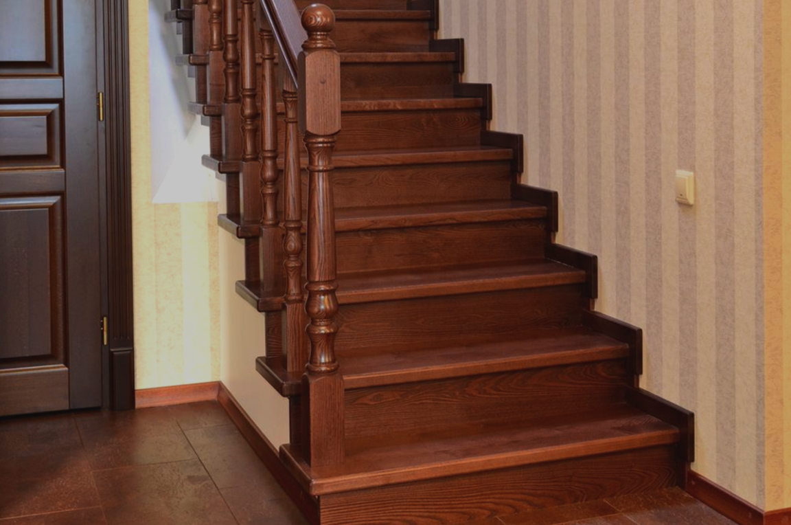 Проступи для внутренних лестниц изготавливаются из чистой дугласовой пихты или древесины твердых пород, без сучков и с плотной текстурой. Поэтому крепление проступей к косоурам лестницы требует предварительной обработки, чтобы древесина не раскололась во время установки и осталась целой на весь срок службы лестницы. Материал проступей для лестниц фрезеруется с зауженным краем, что уменьшает опасность споткнуться. Как правило, проступи нарезаются по длине настольной или дисковой пилой, оснащенной пильным диском. Установка начинается с первой - самой нижней - ступени и продолжается до верха лестницы. 1. Для удобства складывайте нарезанные проступи у основания лестницы. Установите проступь на первый набор косоуров так, чтобы ее край был обращен наружу. Прижмите задний край проступи к стоякам - вертикальным секциям - косоуров. 2. Сделайте контрольную отметку на заднем крае проступи, где она совпадает с центром одного из стояков. 3. Установите электродрель или аккумуляторную дрель со сверло