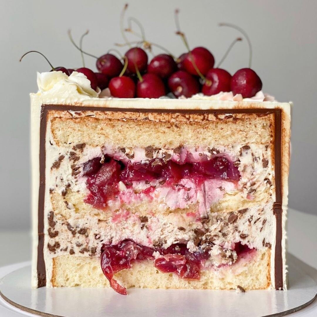 Т ортик получился очень нежным, лёгким и в меру сладким. Попробуйте сами! ⠀ БИСКВИТ (диаметр 16 см) ⠀ Яйца - 3 шт. Сахар - 90гр. Мука - 96гр. Соль - щепотка Разрыхлитель - 0,5 ч.ложки Молоко - 20гр. Растительное масло - 20гр. ⠀ 1️⃣Яйца взбить с сахаром до посветления и увеличения массы в объеме 2️⃣Добавить частями просеянную муку с разрыхлителем и солью 3️⃣Масло обьединить с тёплым молоком и вылить эту смесь в бисквитную массу. Перемешать с помощью лопатки 4️⃣Выпекать при температуре 165° около 40-45 минут ( до сухой зубочистки). ⠀ ЧЕРЕШНЕВОЕ КОНФИ ⠀ Черешня без косточки - 300гр. Сахар - 40гр. Кукурузный крахмал - 9 гр. ⠀ 1️⃣Черешню высыпать в сотейник, добавить к ягодам сахар, довести до кипения смесь и потомить под крышкой несколько минут 2️⃣Развести крахмал в небольшом количестве воды и вылить в кипящую смесь с черешней 3️⃣После того, как смесь загустеет, снять с огня и накрыть пищевой пленкой в контакт 4️⃣Полностью остудить перед сборкой торта ⠀ СМЕТАННО - СЛИВОЧНЫЙ МУСС ⠀ Сметана