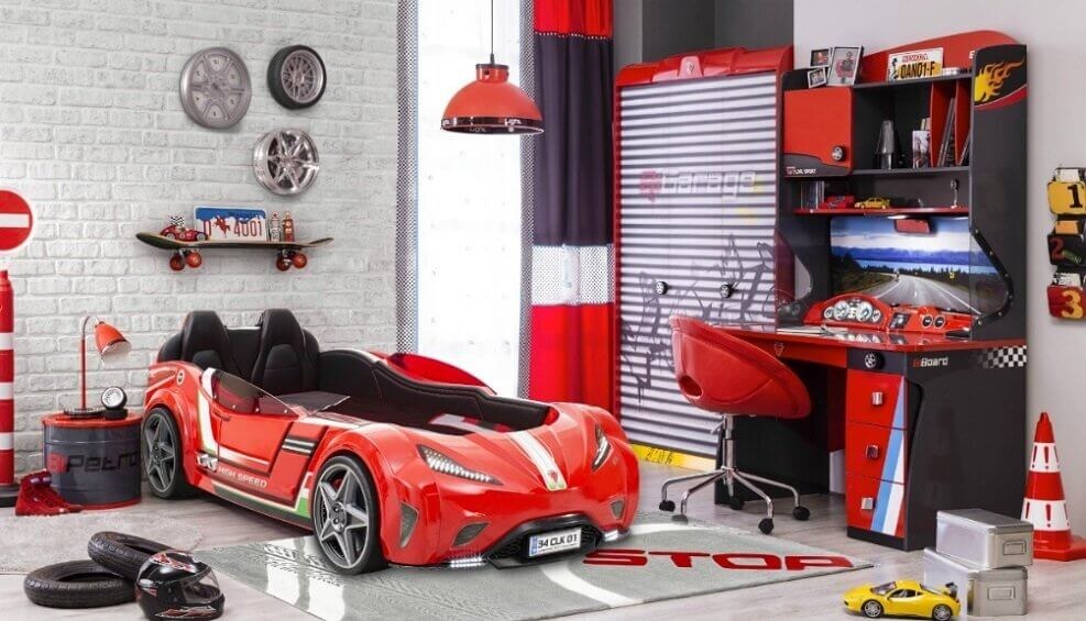 При выборе кровати для ребёнка родители учитывают два главных фактора: внешний вид и материал. Хорошая мебель должна быть прочной, долговечной и безопасной. Однако решающее значение имеет мнение самого ребёнка. Если кровать ему нравится, он будет с удовольствием ложиться спать. Хороший отдых – залог позитивного настроения, правильного развития и формирования здоровых привычек. Мы составили топ-5 рейтинг лучших детских кроватей, подобрав в качестве примеров модели с необычным дизайном. Кровать-машина Кровать-машина – мечта большинства мальчиков. Она совмещает безопасность и реалистичный дизайн. Благодаря рельефным бамперам и объёмным колёсам машины выглядят как настоящие. Производители встраивают в кровати работающие фары, у некоторых моделей дополнительно подсвечиваются колёса. Края покрывают слоем мягкого противоударного пластика. Бортики в виде корпуса предотвращают случайное травмирование во время сна. В кроватях-машинах есть технологические отверстия, которые способствуют циркуляци