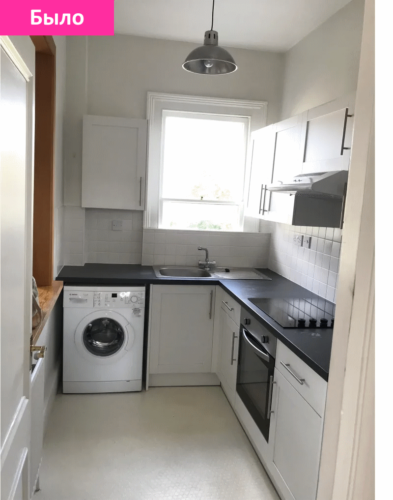 Чтобы потрясающие каменные поверхности и открытые стеллажи выглядели дороже, deVOL решила оставить оригинальное окно как есть. Стиральная машина/сушилка была перемещена, а раковина с каннелюрами поменьше, но более эффектная, была выбрана в соответствии со ставнями, придавая этим особенностям фермерский стиль и оттенок современной урбанистики. Слегка сдвинув раковину влево, мы обеспечили более непрерывное пространство для стойки с обеих сторон, максимально используя ограниченные поверхности кухни, чтобы все члены семьи могли участвовать в приготовлении пищи и подготовке. Новый пол в елочку был установлен, чтобы визуально связать когда-то отдельную кухню и гостиную/столовую.