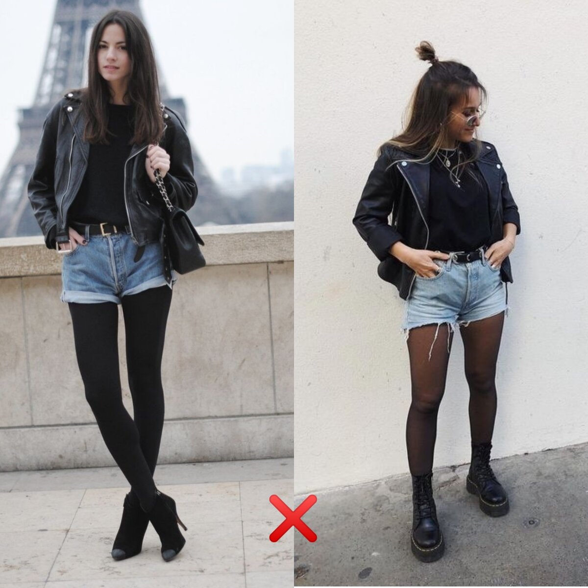 Неочевидная ошибка, которая может испортить самый стильный образ. Джинсовые шорты и юбки голубого/синего цвета лучше оставить на лето. Осень предполагает наличие колготок, если вы надеваете что-то отличное от брюк/джинс. Наиболее актуальны темные, плотностью 40 и больше ден, они хорошо сочетаются с верхней одеждой по типу пальто и кожаных изделий. А синяя джинса смотрится как бы не на своем месте поверх таких колготок. Да, и лучше всего сочетать эти модели с лёгкими футболками и топами, но летом. На примерах заметно, как меняется картина, если заменить синий, например, на черный цвет. На осенний сезон в магазинах появляются шорты и юбочки из плотной ткани и даже из шерсти. Стильно смотрятся кожаные шорты, про которые у меня на канале есть отдельная статья. Не обязательно выбирать черный цвет, исходить нужно из палитры вашего гардероба. Но лучше выбирать ахроматичные, нюдовые и нейтральные тона: кофейный, шоколадный, бежевый, молочный и т.д. Спасибо за внимание! Понравилась статья? Ст