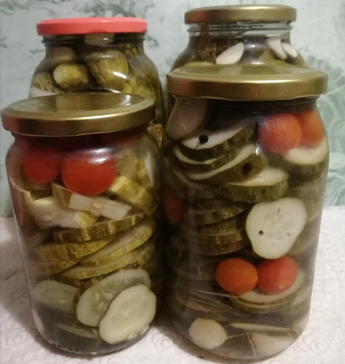 Расскажу сегодня как приготовить маринованные огурцы на зиму а-ля по-болгарски, 'как из магазина'. Помнится, когда-то очень давно, гонялись мы в магазинах за болгарской консервацией. Какой же вкусной она нам тогда казалась, особенно крепкие, кисло-сладкие маринованные огурчики. А уж если подать их к картофельному пюре.. Больше и не надо ничего. Потом уже, много лет спустя, стала готовить похожие огурцы сама, испробовав перед этим не один рецепт. Всем добрый день! Собрала вчера последние огурцы с грядок, все уже, сдергивать их пора. И получились разные - есть крупные, есть кривоватые, так что закрывала что имею - часть огурцов целиком, те что небольшие и на вид приличные, а остальные резаными. Поэтому получилось у меня такое разнообразие. Для маринада нужно, на один литр воды: Соль - 1 столовая ложка Сахар - 2 столовых ложки Перец черный горошек - 3-5 штук Перец душистый горошек - 2-3 штуки Уксус 9% - 120 мл Кроме огурцов в банки надо подготовить зубчики чеснока, зонтики укропа, репч