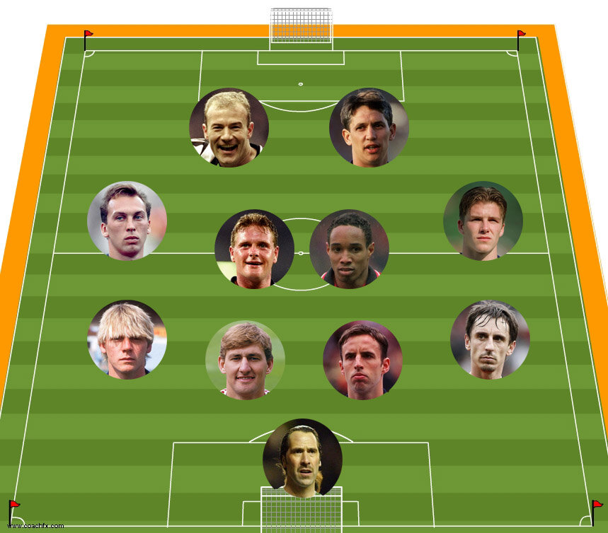 Доброго времени суток, любители футбола! Предлагаю вашему вниманию символическую сборную Англии 90-х.