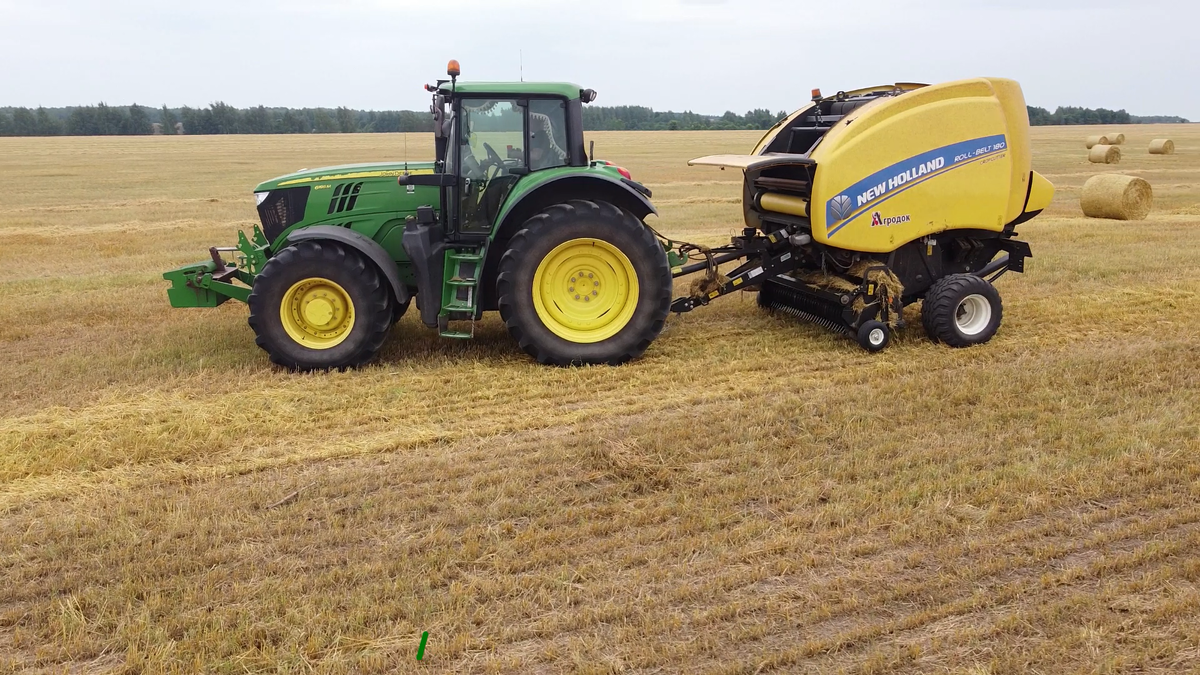 На прессовании соломы трактор John Deere 6195M с рулонным пресс-подборщиком New Holland Roll-Belt 180. Компания New Holland имеет огромный опыт разработки и освоения инновационных технологий в области производства прессованных кормов. Модель Roll-Belt 180 - ременный пресс-подборщик с изменяемым размером камеры, что позволяет выбирать диаметр рулона от 0,9 до 0,18 м. Друзья, подписывайтесь на канал, чтобы не пропустить новые видео. https://www.youtube.com/channel/UCzJcvngpDbTgFwi7QAvVgUw?sub_confirmation=1