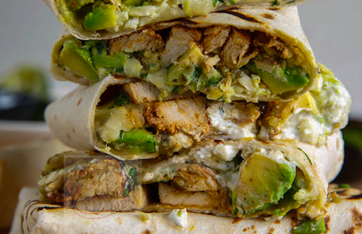 По популярному мексиканскому рецепту можно приготовить прекрасную и аппетитную закуску – буррито с куриным мясом и авокадо, а подавать такое блюдо рекомендуется с нежирной сметаной. Ингредиенты: - нежирная сметана для подачи (по вкусу); - готовые тортильи кукурузные (восемь штук); - свежая петрушка измельченная (94 г); - легкоплавкий сыр твердый (245 г); - свежий перец чили зеленый небольшой (одна штука); - копченое филе куриное (430 г); - рубленый укроп свежий (20 г); - авокадо (одна штука). Процесс приготовления: Поставить сковороду-гриль на сильный огонь и разогревать ее примерно восемь минут, разложить на столе кукурузные лепешки, мелко натереть сыр. Выложить тертый сыр равными порциями на лепешки, почистить авокадо, разрезать его на половинки, аккуратно удалить косточку. Мякоть авокадо, а также копченое куриное мясо нарезать небольшими кубиками, перемешать и тоже выложить равными порциями на лепешки. Добавить всю измельченную зелень, а также чили перец, нарезанный маленькими кусоч