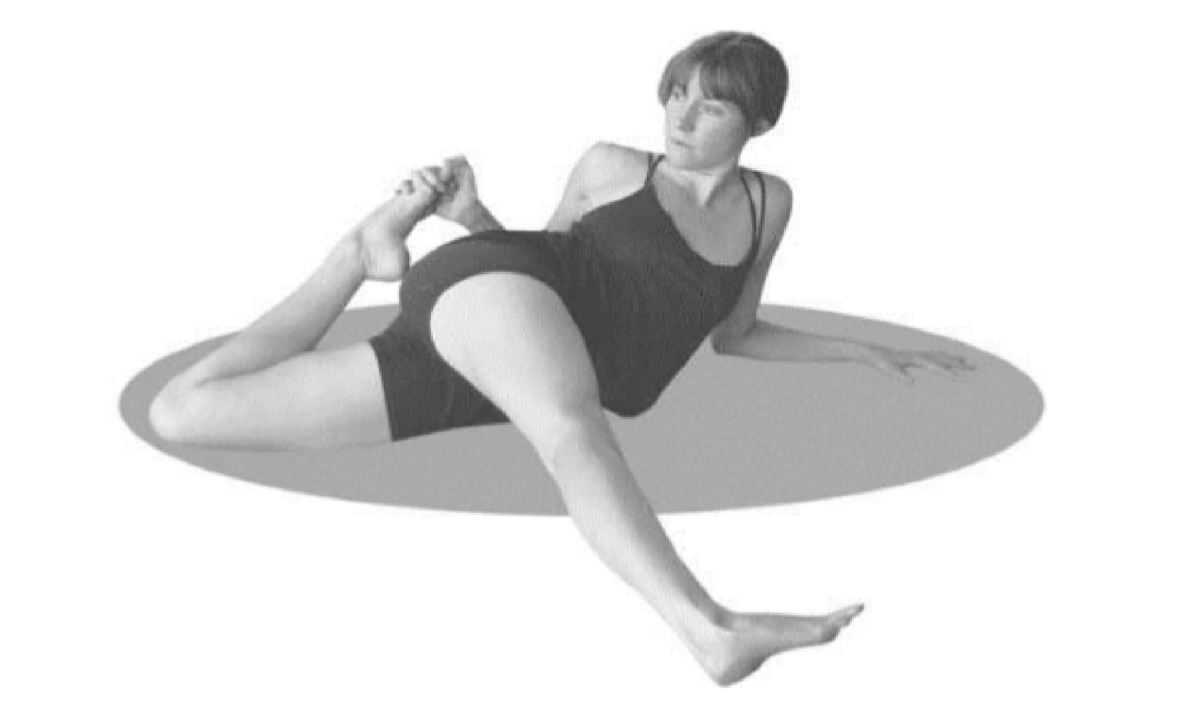 Преимущества Асана служит хорошей контрпозой после сильных наклонов вперед, например асан «Улитка» или «Гусеница». Дает мягкую нагрузку на нижнюю часть спины. Раскрепощает четырехглавые мышцы и верхнюю часть бедер. Противопоказания Если у вас проблемы с поясницей, выполняйте эту асану плавно и осторожно. Возможно, у вас вообще не получится оттянуть ногу. Как принять позу Исходное положение – сидя, вытянув ноги перед собой. Проделайте скручивание вправо и обопритесь на правый локоть. Держа правую ногу прямо, выдвиньте левую ногу вперед и в сторону, как показано на фото. Согните правую ногу так, чтобы подтянуть пятку к ягодице. Протяните назад левую руку и возьмитесь ею за ступню. Оттяните ногу в направлении от себя. Можно начать асану из положения лежа. В таком случае перекатитесь на правый бок. Держа правую ногу прямой, отогните левую ногу в сторону. Согните правую ногу и подтяните пятку к ягодице. Дотянитесь левой рукой и возьмитесь за щиколотку или носок правой ноги. Оттяните н