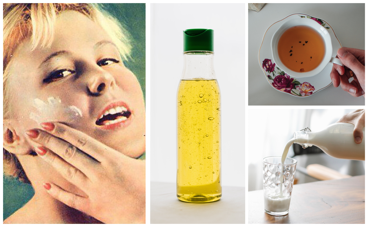 Как женщинам в советские дефицитные времена удавалось устраивать себе спа-процедуры? Были гениальные секреты красоты в СССР, а многие актуальны и сейчас. Тогда ценили биологическую активность домашних косметических средств, которые, как правило, давали замечательные результаты при регулярном применении. Очищение. Кожу лица любого типа, предохраняли от высыхания, делали ее мягкой, эластичной, упругой, при помощи умывания растительным маслом. Также для очищения, увлажнения, питания, отбеливания, удаления веснушек пигментных пятен умывались сливками, простоквашей или кефиром. Для жирной кожи протирали её кисломолочными продуктами в два-три круга и оставляли тонкий слой кислого молока до утра. При сухой коже ополаскивали лицо водой и наносили питательный крем. Скраб Умывались размоченными под струей воды овсяными хлопьями. Эта процедура делала кожу гладкой и нежной. Маски для упругости и тонуса кожи: Мякиш пшеничного хлеба смешивали и растирали в слегка подогретом молоке и равномерно