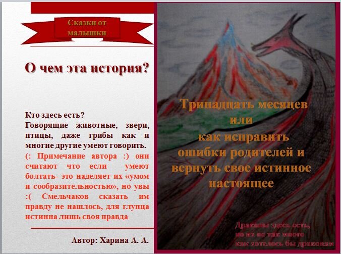 – Зачем наказывать моих родителей,– не понимал Саша, спеша к ладье. Как только он переступил борт, она взлетела в воздух и полетела к огромной одинокой горе, что высилась над Долиной Зеленого Дракона. Уже издалека мальчик увидел на вершине двух красивых и величественных Драконов. Одного огненного красного с огромными мощными лапами и длинным шипастым хвостом. Другого, чуть поменьше, синего с блестящими перламутром чешуйками с красивыми тоненькими рожками на голове, шестью миниатюрными лапками и длинным ажурным хвостом. Это были родители Виверного, он их сразу узнал их даже в обличии Драконов.