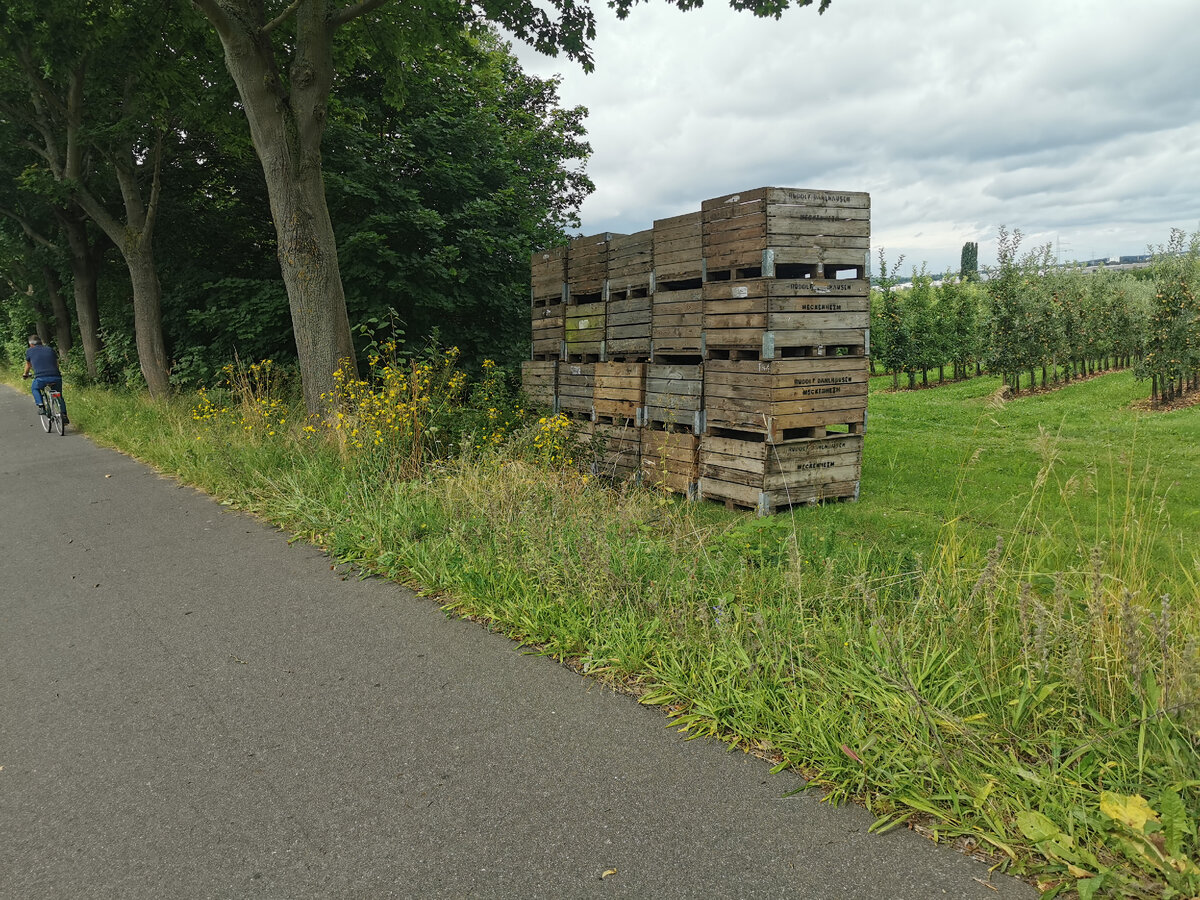 Яблоки! Я живу возле фермерских полей и могу рассказать как немцы на яблоках зарабатывают!Это ящики для собранных яблок! Это реклама магазина! а это сами яблочные поля!все деревья привитые и выше им расти не дают! Это сделано для того чтобы было легче их обрабатывать и подкармливать! видите какие большие расстояния между рядами По ним ездит трактор с большой бочкой и опрыскивает эти деревца потому они и не высоки! Собирают их вручную,в резиновые вёдра,ставят те ящики на низкие длинные прицепы и трактор тащит их по междурядью,всё чуть годное кидается на землю!рабочие набирают яблоки в вёдра и тут же высыпают их в эти ящики! а за деревьями стоит многоэтажка где я снимаю квартиру! а это пожарный выход прямо к садам перешёл дорогу и ты уже в яблочном саду!3.или 4 яблочка сорвал и сунул в карманы,никто обыскивать не будет да и заборов тут никаких нет!