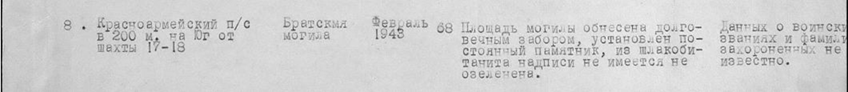 2. Добропольский ОГВК 1962 год – 7 захороненных.