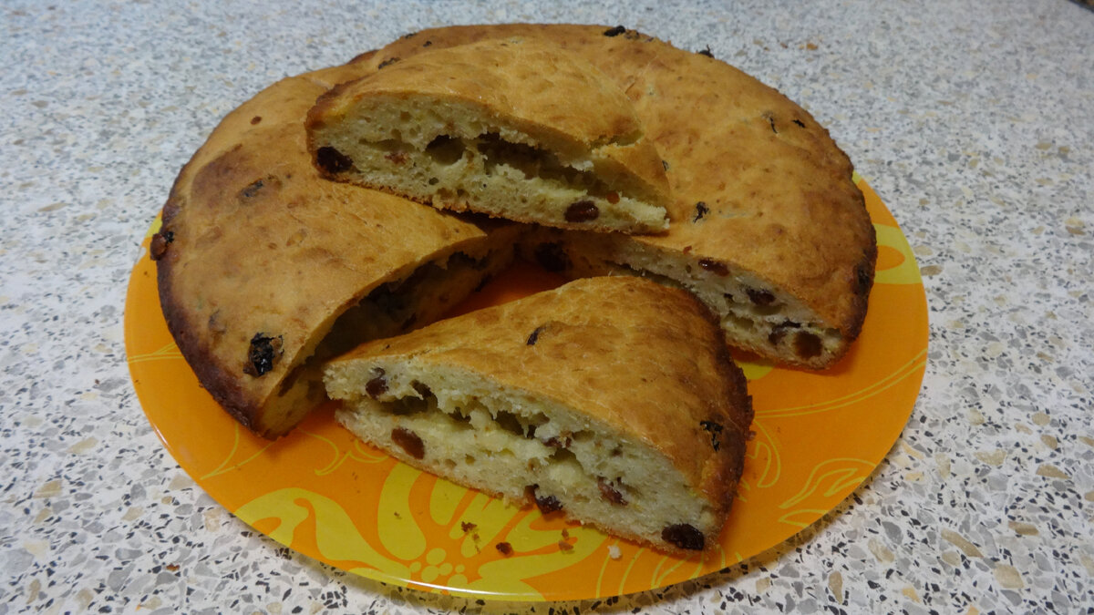 Добрый день мои читатели, подписчики и гости! Неплохой кекс. С аппетитным лимонным ароматом и вкусными влажными островками изюма. Интересно, что кекс совершенно не липкий. Наоборот, то тесто, где нет изюма, ощущается немного суховатым. Кабачок во вкусе кекса не чувствуется. Для приготовления потребуется: 400 г кабачка, 0,5 ч. л. соли, 2 яйца, 2 ст. муки (320г), 0,5 ст. сахара (100г), 2 ст. л. растительного масла (35г), 1 ч. л. лимонной цедры, 2 ч. л. разрыхлителя, 70-100г изюма Кабачок натереть на средней тёрке. Посыпать солью и хорошо перемешать. Оставить на 10 минут, чтобы соль вытянула сок. Слить сок. Изюм вымыть и залить кипятком. Оставить на 5 минут, чтобы изюм разбух. Воду тщательно слить. В другой миске взбить яйца с сахаром. Добавить мелко натёртую лимонную цедру и насыпать муку с разрыхлителем. Перемешать ложкой. Затем влить растительное масло и ещё раз перемешать. Вмешать изюм. Так как тесто довольно влажное и тяжёлое, желательно взять форму-кольцо с отверстием посередине. У