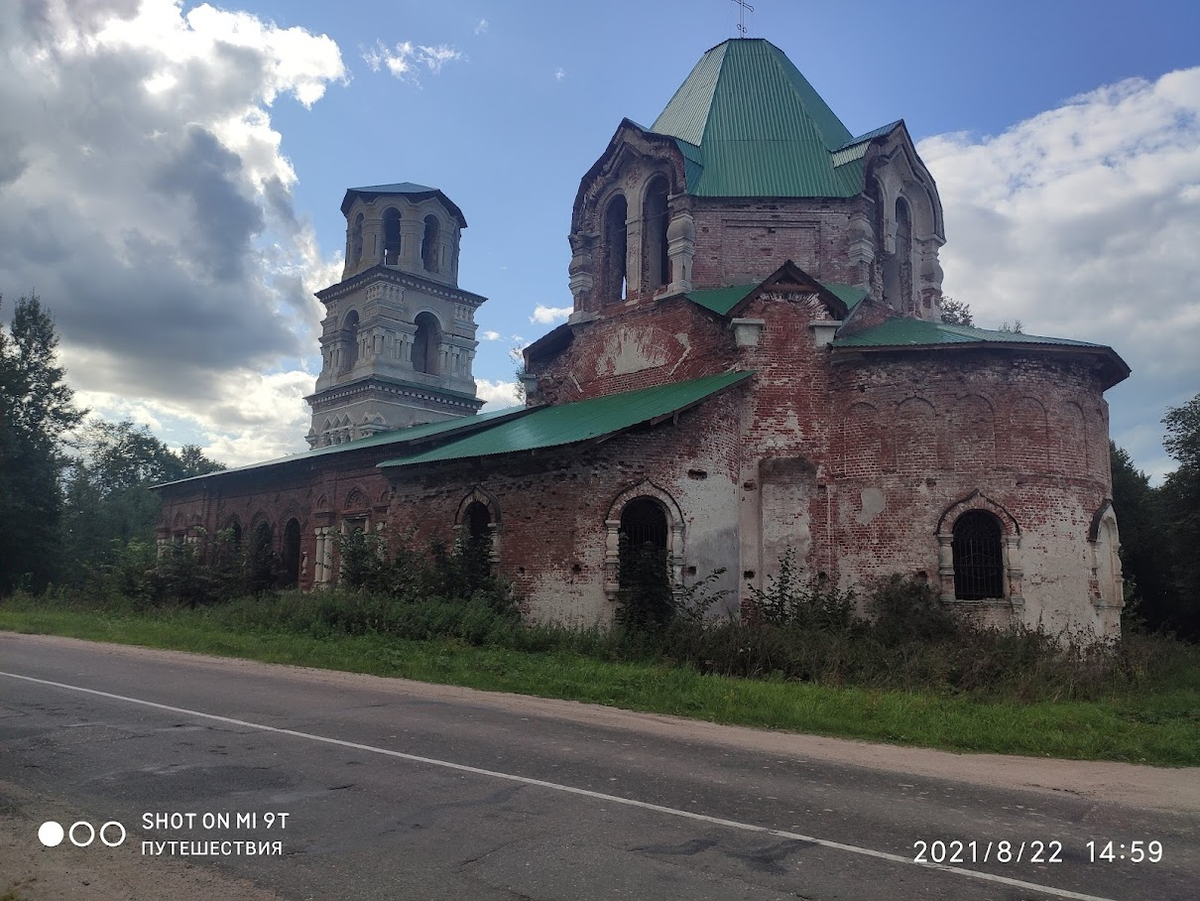 Недавно, проезжая через Тверскую область, мы заметили прямо на обочине огромную разрушенную, но всё ещё потрясающе красивую церковь.
