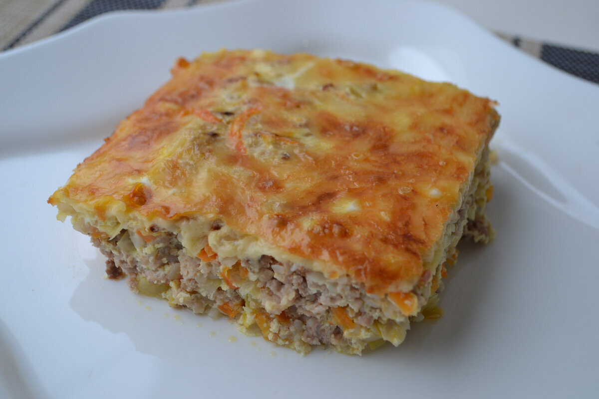 Продукты: Картофель-500 г Фарш-250 г Лук репчатый-100 г Сыр твердый-100 г Сметана-100 г Масло растительное-2 ст.л Соль по вкусу Перец черный молотый по вкусу 1 Обжарить фарш 2-3 минуты 2 Добавить мелко порезанный репчатый лук 3 Приправить солью и перцем. Готовить еще 3 минуты 4 Картофель почистить 5 Порезать тонкими пластинками 6 Форму для запекания смазать маслом. Выложить слой картофеля 7 Немного приправить 8 Сверху выложить слой фарша 9 Посыпать тертым сыром 10 Полить сметаной 11 Последний слой - слой сыра и сметаны. Запекать при 190 градусах 45-50 минут 12Последний слой - слой сыра и сметаны. Запекать при 190 градусах 45-50 минут