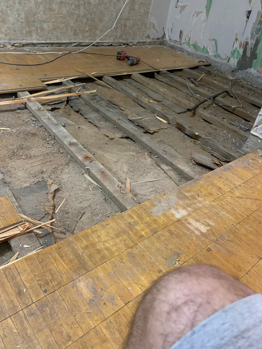 Всем привет, в этой статье расскажу как делал ремонт в комнате. Сперва вытащили и освободили комнату от мебели и начали вскрывать полы. Полу были внутри песок, лаги и на эти лаги прибиты доски а на них наклеен паркет, который всегда клался как елочка, но здесь почему то не так) После вскрытия собрали все доски и песок. Кстати песка вышла около 10-13 мешков). Дальше обязательно начинал прокладывать проводку для розеток. Отмерял размер и засовывал в гофру. Потом поставил маяки для ровности пола. После того как цемент застыл и маячки зафиксировались начал между ними сыпать керамзит, а на него уже саму стяжку для пола. Керамзит тоже размешан был с раствором. Такая смесь очень быстро застывает и можно уже по ней ходить. А после этого уже мешаем стяжку без керамзита и заливаем сверху. Продвигаем провилом с небольшой вибрацией. После заливки пола до 31 дня на него лучше пока не класть паркет, а то может вздуться, а плитку можно стелить не раньше 21 дня. Ходит можно будет уже на следующий де