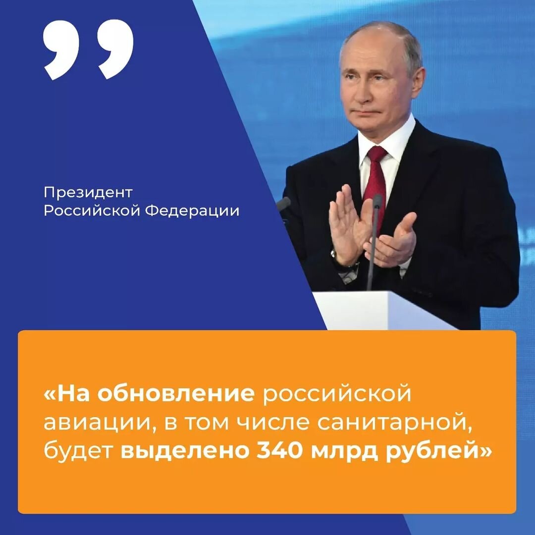Президент поручил обновить российскую авиацию. Изменения коснутся не только гражданских, но и санитарных самолётов👇🏻