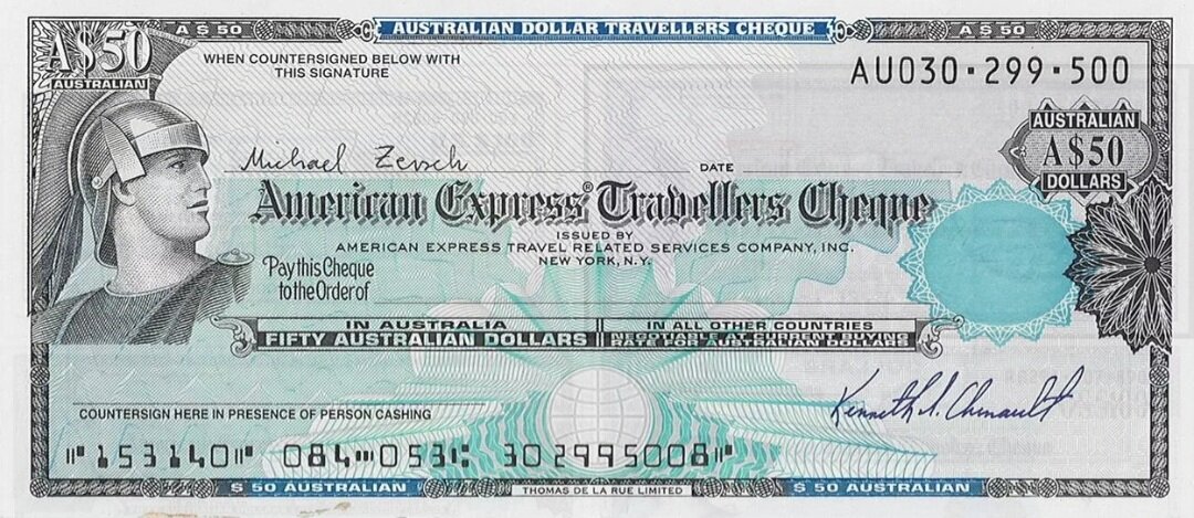 Вы покупаете у себя на родине за национальную валюту или за мировую валюту (доллары или евро) дорожные чеки какого-либо номинала и расписываетесь в каждом полученном чеке. Хранить чеки вы можете сколько угодно долго. Когда вам понадобится использовать чек (обналичить, т.е. поменять на национальную валюту или рассчитаться чеком) вы передаете чек кассиру, при этом повторно расписавшись в нем, и, тем самым, подтвердив, что это ваш чек.