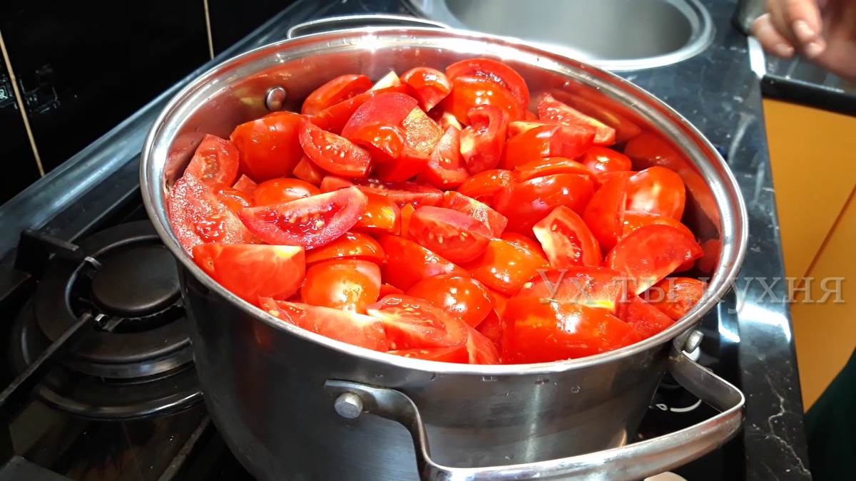 Привет, друзья! Сезон заготовок в разгаре и нужно успеть закатать побольше соусов: сегодня сацебели. Густой, кисло-сладкий соус, очень ароматный, который прекрасно подойдет к мясу или рыбе. Рецепт простой и быстр в приготовлении. Берем спелые мясистые помидоры, разрезаем на 4 части. Ставим на огонь и тушим 20-40 минут (зависит от сорта помидор), до мягкости и готовности овощей. Когда помидоры сварились и на поверхности образовалась жидкость, ставим поварешку на середину, немного прижимаем и весь сок(помидорная водица) собирается в неё, выливаем в отдельную ёмкость. Эта манипуляция в разы сократит время варки. Оставшуюся гущу пробиваем блендером до однородности. И уже получается густой томатный соус. В чаше блендера измельчаем чеснок и горький перец, добавляем специи и хорошо перемешиваем, получившуюся смесь добавляем к томатному пюре. Доводим до вкуса солью и сахаром. Провариваем 10-15 минут, чтобы вкусы объединились. По окончанию варки, выключаем нагрев и добавляем уксус (не кипятим)