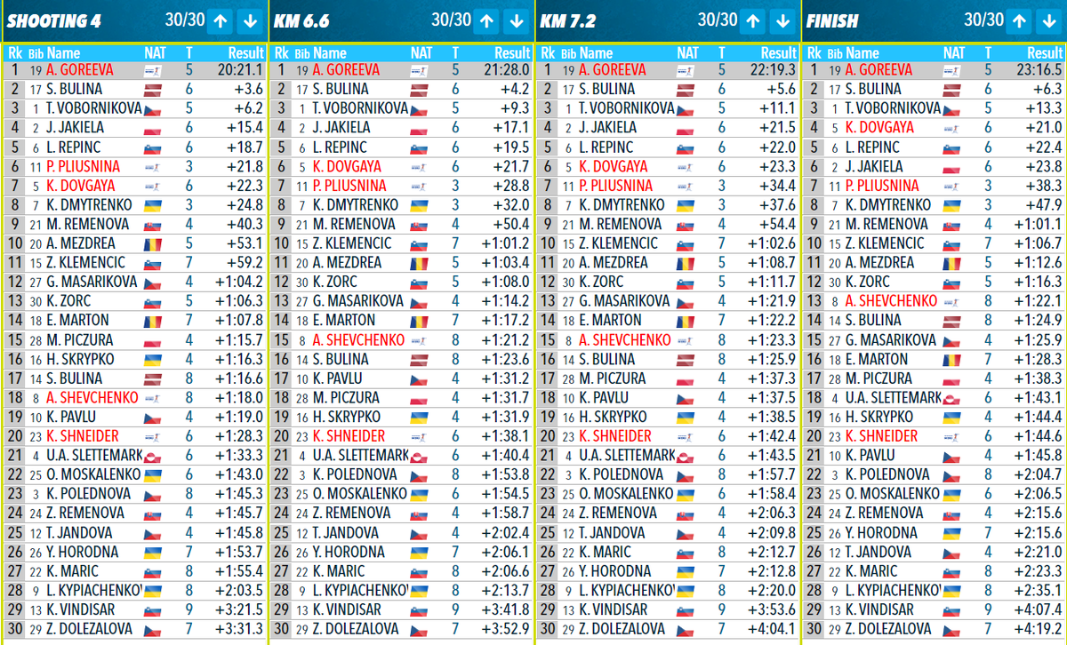 В НовеМесто/Чехия стартовал летний чемпионат мира по биатлону. Открывают программу чемпионата юниорки. Сначала прошла квалификация и затем 30 лучших разыграли первый комплект медалей. Кто Поедет на Чемпионат Мира по ЛЕТНЕМУ БИАТЛОНУ? Сборная России из-за санкций и ограничений выступает под флагом СБР. Стартовые номера: Ксения Довгая (5), Анастасия Шевченко (8), Полина Плюснина (11), Анастасия Гореева (19), Ксения Шнейдер (23). Виктория Петрова пропустит соревнования из-за болезни. В финал суперспринта пробились 5 наших юниорок, среди них уже опытные сборницы Гореева и Шевченко. Первая Анастасия сумела побороться при изрядном количестве промахов и штрафных кругов и выиграла гонку, а вторая закопалась на первой же стрельбе и с 8 промахами лишь на 13 месте. Ни одна из ведущих биатлонных держав не представлена на этом летнем ЧМ. Отсутствуют представители Норвегии, Швеции, Финляндии, Франции, Германии, Австрии. Есть Россия, Украина и бывший соцлагерь. Серьезных соперников нет, но тем не ме