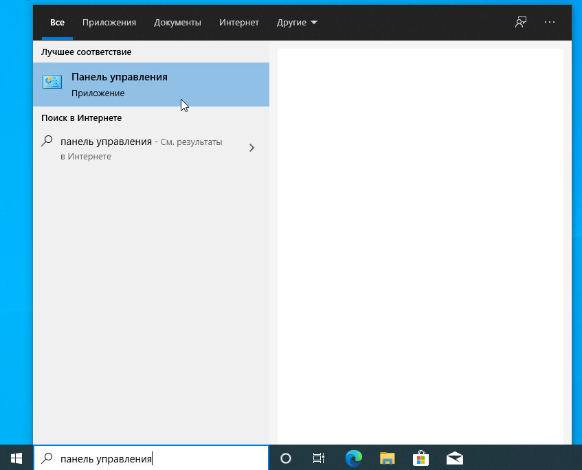 1. Ввести в строку поиска запрос "Панель управления" и найти соответствующий результат в поисковой выдаче. Ее нам и требуется запустить.