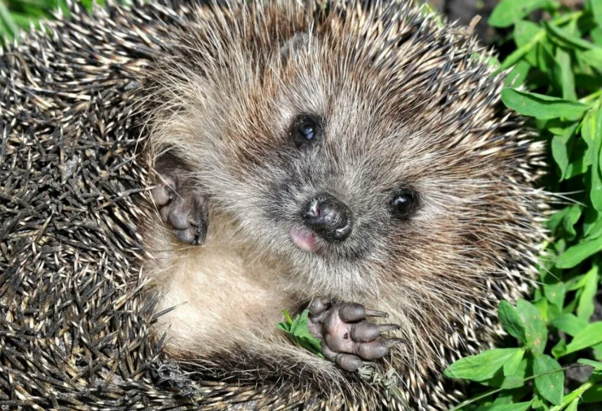 Милый ёжик лежит в траве