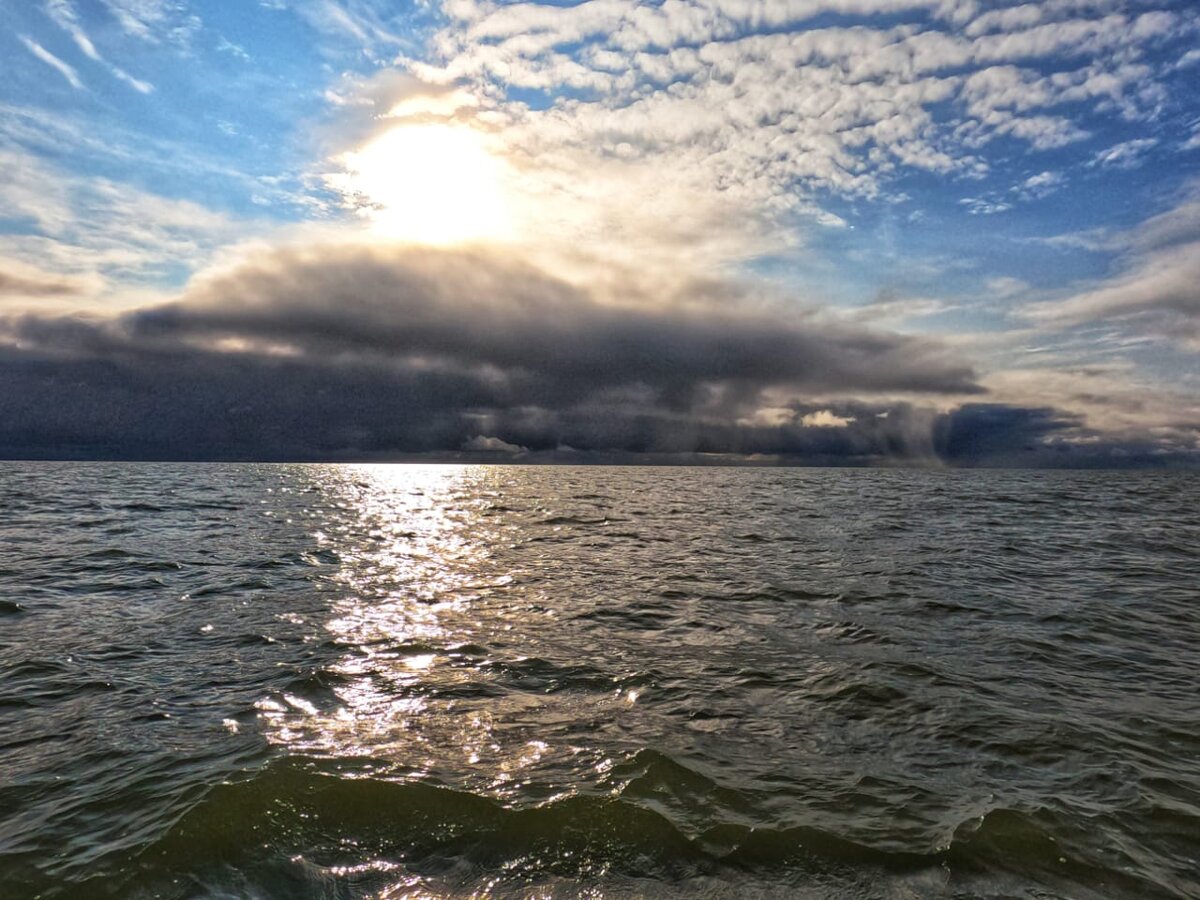 Утром +8. Ощущается как +5. Собираемся в залив. Нужно ещё раз прокатиться по 50-ти точкам. Взять пробы воды и опустить-поднять датчик на дно. После сегодняшнего заезда этот датчик отработает своё.