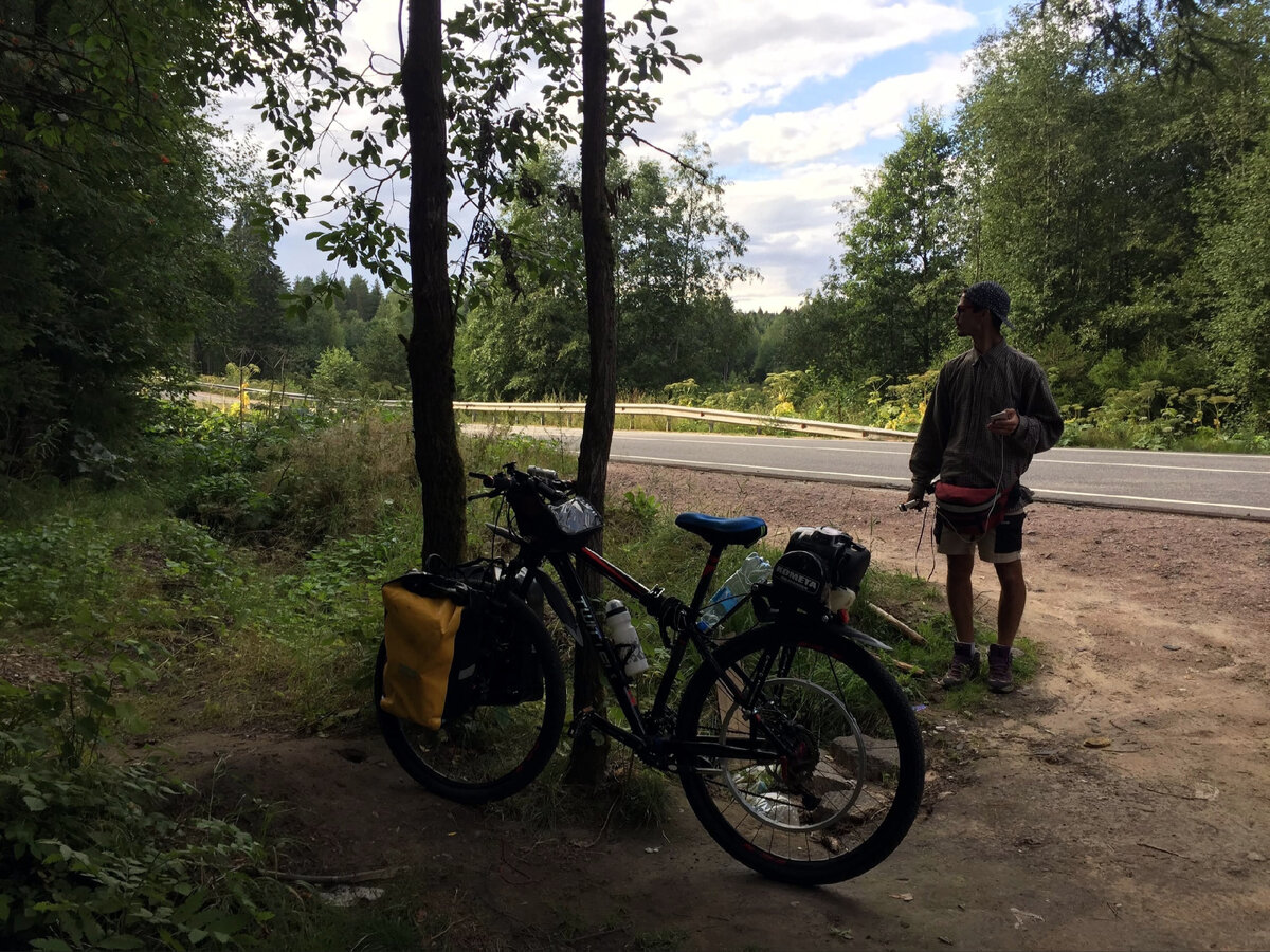 Если честно, мы до сих пор в шоке от этой конструкции, а как она едет, ух, дух захватывает... Ну вот и настал день выезда. Естественно мы проспали до самого обеда, в Питере вообще как-то долго спится, а ещё утром не понимаешь, сколько вообще время. Итак, 12:00, рюкзаки наконец-то собраны, вытаскиваем все на улицу, ещё несколько фоточек, нужно заехать в пару магазинов, вообще куча дел, кстати, и все нужно держать в голове. Воды нужно набрать, купить еды, теперь ещё не забывать про бензин, следить за картой, чтобы телефон не разрядился, и кучу кучу всего ещё... Чтобы не пугать народ, из города мы выехали на педалях. Пришлось немного по встречке прокатиться, ну вроде выбрались, хотя с моторами ещё педали-то крутятся, но дополнительное сопротивление все же дают, в таких случаях лучше снимать ремень грм. Ну а дальше мы уже вжарили. Естественно, не без первоначального тупизма с нашей стороны, вроде в итоге поехали, правда не долго, километров 5 и у Марины порвался этот самый ремень. Начало в