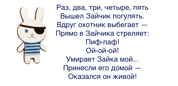 Краткое содержание истории: Более глубокое описание: Раз, два, три, четыре, пять, Вышел Зайчик погулять.