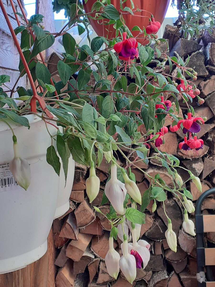 Фуксии скоро поедут на балкон, но пока - цветут.