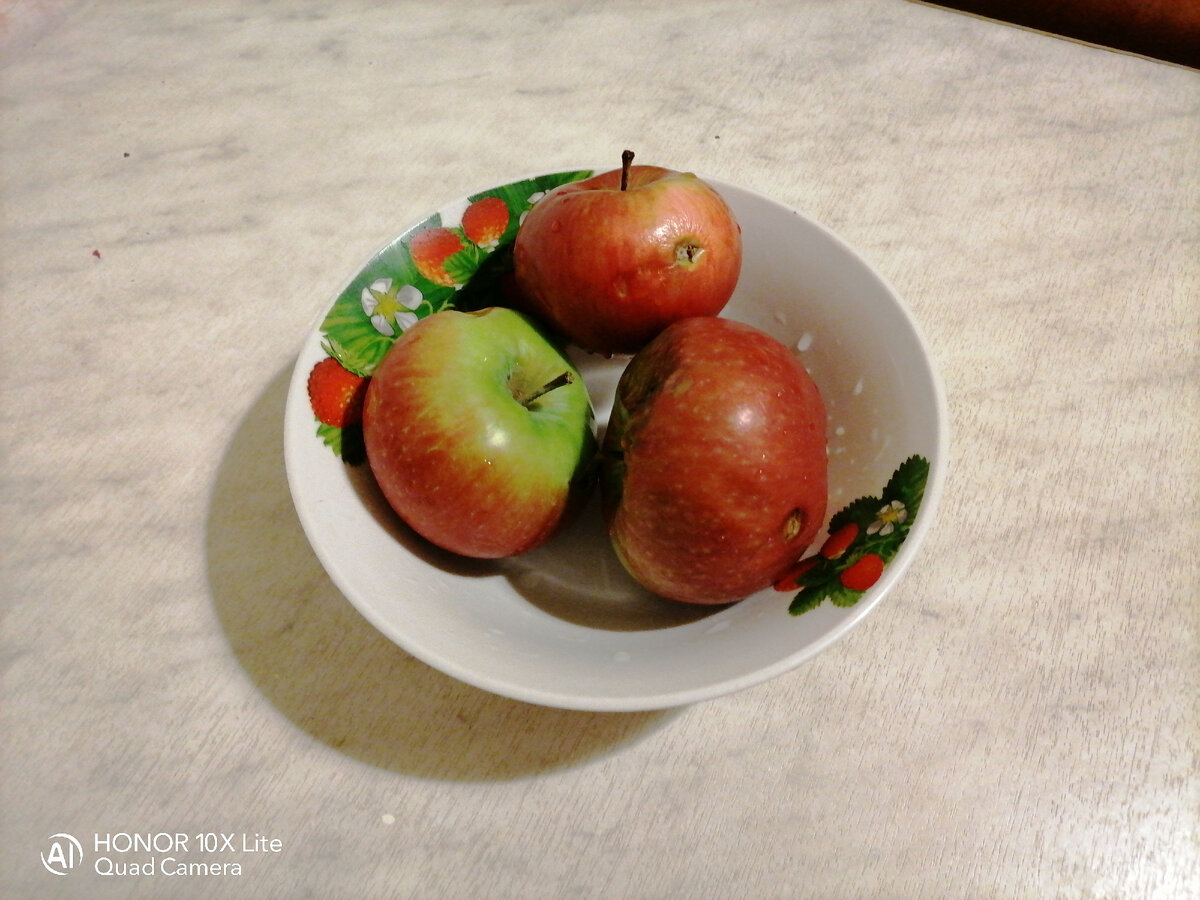 Доброго денёчка, друзья! Когда хочется что-нибудь вкусненького, а сладкое я ем только в охоточку. То решила приготовить себе вкусняшку. Яблоки с медом много лет назад моя еще прабабушка запекала в казане на печке. И мы все ее правнуки сидели и лопали. Для нас это был, как десерт, как пирожное. Время шло и мы теперь вместо меда в яблоки кладем сахар. Мне так больше нравится. От сахара выделяется сироп, за счет него яблочки получаются очень вкусными. А если яблоки кислые, то особенно лучше внутрь яблока насыпать сахар. А мед, он как бы впитывается в яблоки, придает сладость яблокам. Яблоки у меня домашние, с моего сада. Даже и если со своего сада, то все равно яблочки нужно как следует помыть горячей водой. А ещё главное, чтобы ножик был хорошо наточен. Так удобнее вырезать сердцевину у яблока. Теперь из яблока вырежем сердцевину. Можно вырезать только сверху при этом яблоко оставить целым. А можно вырезать и по глубже, при этом сохранить дно, чтобы сахар не высыпался. Я вырезала ближе