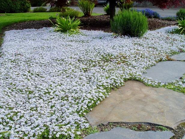 Лаурентия речная, способная выдерживать вытаптывание, долго приживающаяся на новом месте, но затем компенсирующая медленный рост бурным заполнением почвы густым, светлым и очень прочным ковром, укрытым практически до наступления морозов звездочками белоснежных цветков; Мюленбекия агрессивно разрастающаяся и быстро распространяющаяся лиана, создающая ковер из круглых миниатюрных глянцевых листьев, любящая весеннюю обрезку и эффектно меняющая окрас осенью; Барвинки, способные создавать плотные покрытия и на солнце, и в тени, красующиеся зимнезелеными листьями на гибких побегах и миловидными цветками; Звездчатка ланцетовидная, способная заполнить даже участки с нехваткой влаги и скудной почвой вокруг стволов деревьев-исполинов и прекрасно подходящая для создания ковров в притенении; Грыжник гладкий, известный среди дизайнеров как green carpet, засухоустойчивый, создающий плотное покрытие мелколистный почвопокровник, меняющий осенью яркий травянистый окрас на бронзовый; Мазус ползучий, по