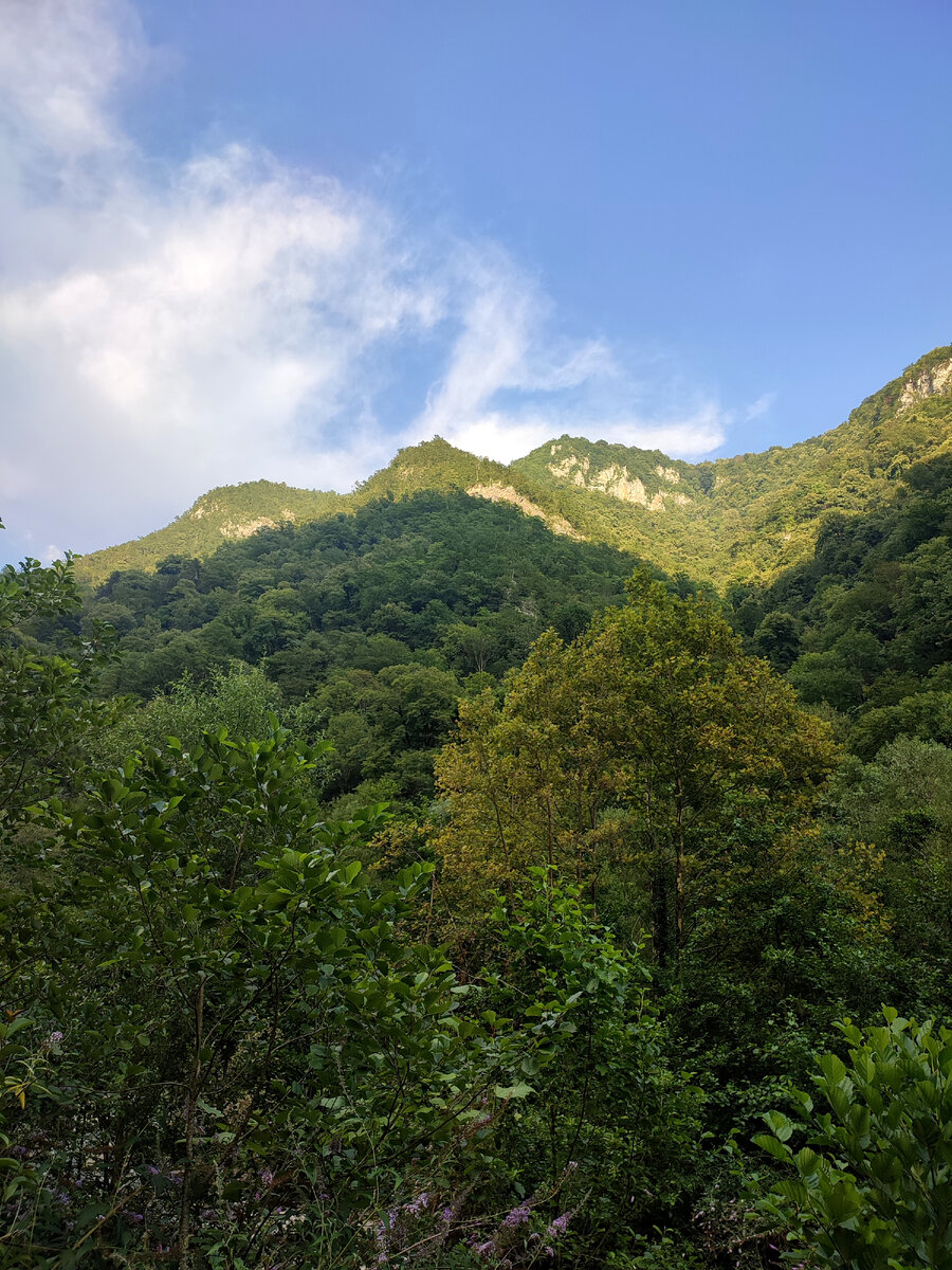 Немного отвлечемся от заброшек Старой Гагры и отправимся в Жоэкварское ущелье. Лет пять назад мы уже были в нем, ходили с проводником на пасеку. Нам очень понравилось там, и вот мы решили повторить поход с внучкой. Как добраться до него, если вы живете в Гагре? Доезжаете или доходите до площади Гагарина (сейчас Нартаа) и идете по улице Русских Добровольцев идущей вдоль реки Жоэквары в сторону гор. Обязательно наденьте удобную обувь, фиксирующую стопу. Дорога проходит частично по реке, нужно переходить по камням. Возьмите с собой ветровку или дождевик. Ну и, конечно же запас воды. Вода в реке хоть и чистая, но пить без кипячения не рекомендую. Выходить лучше с утра или сразу после обеда. Позднее трех часов делать это не стоит. В горах быстро темнеет, и дорогу вы найти вряд ли сумеете. И не нужно заходить далеко, рассчитывайте на свои силы. Прогулку в одиночестве не советуем. Если страшно самостоятельно, там есть прогулки на лошадях. Кстати по ходу прогулки вы часто будете встречаться