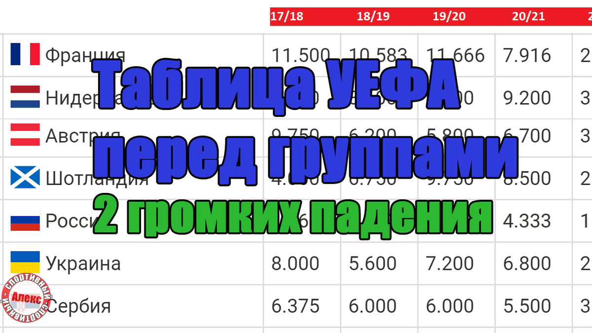 Как выглядит Таблица коэффициентов УЕФА перед группам? Сколько потерялось клубов? Россия лишилась ещё одного места.
