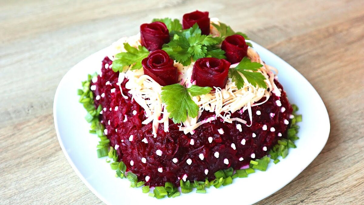 Сегодня я расскажу как приготовить слоеный салат со свеклой, который вы с легкостью приготовите сами, потратив на это минимум времени. Оригинальный салат на праздничный стол на скорую руку пошаговый рецепт. ИНГРЕДИЕНТЫ: картофель 4 шт морковь 3 шт яйца 4 шт свекла 1 шт лук белый 2 шт сырок плавленый 2 шт 1. Заранее отварите 4 картофеля, 3 моркови, 4 яйца и 1 свеклу. 2. Два лука нарежьте на кубики и обжарьте на сковороде с добавлением небольшого количества растительного масла до легкой золотистости. 3. Начинайте выкладывать салат на тарелку таким образом: -первым слоем натрите картофель на крупной терке. -сверху выложите половину жаренного лука. -следом натрите морковь на крупной терке. -смажьте майонезом. -натрите свеклу на крупной терке. -выложите оставшийся лук. -смажьте майонезом. -возьмите 2 плавленых сырка и натрите на крупной терке. -снова слой майонеза.
