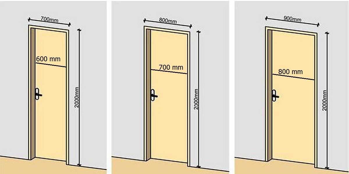 По ширине у межкомнатных дверей 5 стандартов, а у входных дверей два. Вроде бы все просто. Остается перечислить эти размеры и указать напротив каждого точные размеры дверных проемов. Но есть особенности, на которые следует обратить внимание. Стандартная ширина дверных проемов принятая у российских производителей равняется 600, 700, 800 и 900 мм. Как правило, стоимость дверного полотна для всех этих размеров одинаковая. Почему двери производят разной ширины? В обычной квартире в комнаты проемы рассчитаны на двери шириной 800 мм, на кухню в дверные проемы подойдут двери шириной 700 мм, а в ванную и в туалет ставятся узкие двери шириной 600 мм. Еще есть узкие двери, у которых полотна шириной 550 мм , 400 мм и даже моно сделать 300 мм. Такой ширины полотна изготавливает не каждый производитель да и модельный ряд очень ограничен. В общем, двери шириной 300 мм - это минимальная ширина. Таких узких дверей конечно же не бывает. Узкие полотна применяются при установке двустворчатой двери или с