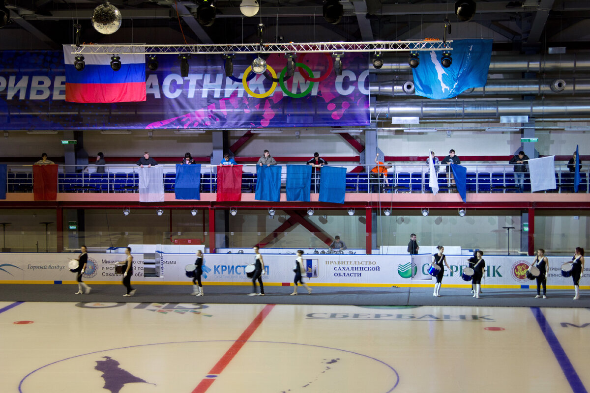 Специалисты ВИАТЕК произвели разработку проекта оснащения, поставку оборудования и выполнили пуско-наладочные работы мультимедийных систем крытого ледового дворца в г. Южно-Сахалинске. Задачи: Спортивно-оздоровительный комплекс предусмотрен для проведения учебно-тренировочных занятий, соревнований по хоккею с шайбой и фигурному катанию. В соответствии с техническим заданием заказчика ледовый дворец оснащён системами звукоусиления, видеоотображения, управления, а также электронной системой судейства и системой светотехнического оборудования. Отличительной особенностью проекта стало внедрение системы судейства «Видоогол». Система видеофиксации «Видеогол» на базе видеорегистратора и четырех камер высокой чёткости позволяет в режиме реального времени наблюдать за происходящим у ворот, просматривать повтор любого записанного момента. Система звукоусиления ледового дворца предназначена для проведения различных спортивных мероприятий. Комплект сферических акустических систем трибуны и ледовой