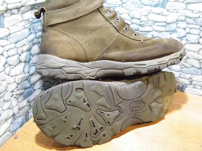 Когда-то трава была зеленее, борщЪ наваристее, женщины толще и весь мир был красивым. Но это к делу не относится. А относится то, что примерно тогда фирма "Гарсинг" выпускала очень добротную обувь. И эта модель как раз оттуда. Они лёгкие, тягать их можно после снега до следующего снега. И может ещё немного со снегом. Что скорее всего и делали. Подошва - несмотря на то, что она с "пенкой" - не рассыпалась, банально стёрся износоустойчивый слой. Что ещё раз говорит об их удобстве. Старался найти хоть какой дефект верха - не нашёл. Даже задники и подкладка в пальцах целые. Так получилось, что фирма "Гарсинг" не делает секрета из своих комплектующих, и подошвы можно купить. Да, пусть тех моделей уже нет, пусть не нашили светлую, но это всё же "Гарсинг". Снимаем старую, примеряем новую. Старый клей нужно убрать. Применяем наждачку, черновой нож и гибкий вал. Можно в это время петь матерные частушки или придумывать новые слова, чтобы работа спорилась. Подошва не попала в размер. Либо уже рас
