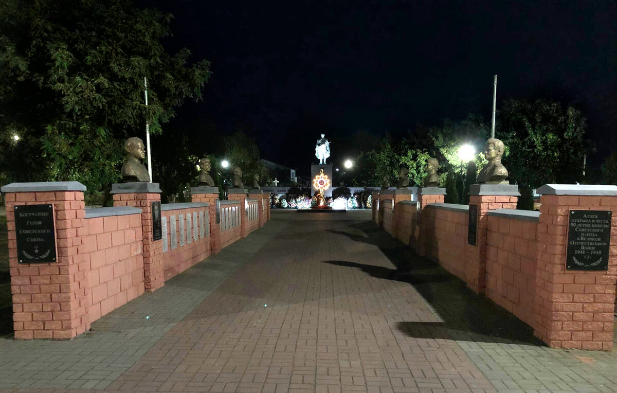 В парке г. Богучар включили красивую подсветку, приходите вечером гулять, пока еще тепло.