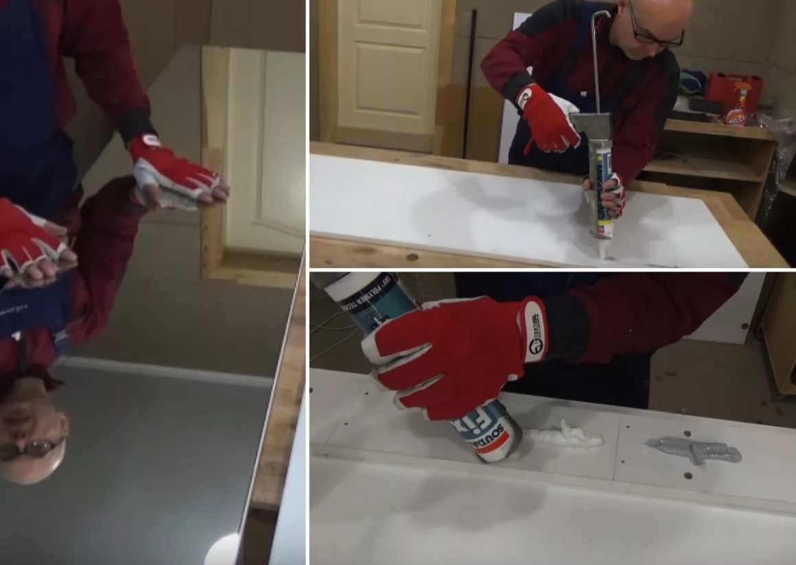 Шкафы из термофойла обычно изготавливаются из древесноволокнистой плиты средней плотности, покрытой виниловой оболочкой, прошедшей термическую обработку. Со временем оболочка может стать хрупкой и отделиться от МДФ. Это может проявляться в виде отслоения на углах шкафов или отламывания больших кусков при прикосновении к краям, обнажая находящийся под ними МДФ. Используйте влагостойкий клей, чтобы прикрепить винил обратно к МДФ и отремонтировать отслоившиеся и порванные участки шкафов. 1