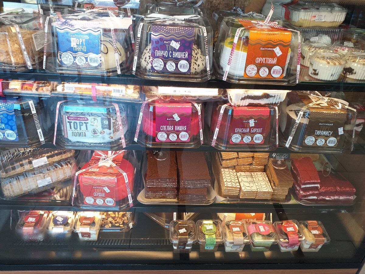 Всем привет! Отдыхаю по-прежнему на Черноморском побережье в прекрасном городе Сочи! От плаванья в море разыгрывается сильный аппетит, поэтому покажу вам что можно перехватить на пути к морю в местном магазинчике. Рай для сладкоежек! Торты и пирожные местного сочинского производства. Очень вкусные и недорогие по питерским меркам. Тут же в магазине продается кофе, можно присесть и спокойно перекусить под ритмы кавказской сочинской музыки. Фото этих же вкусняшек поближе. Набо пирожных Эклеров можно взять за 250 рублей. Для любителей более сытных перекусов также есть что выбрать: Самса с курицей и Хачапури с сыром-ммм... вкусняшка! Стоит 70 и 50 рублей соответственно. Ачма с сыром-тоже местное и очень сытное блюдо! Стоит 90 рублей-одна штука. Хочется похудеть на море, да не получается! Всем прекрасной осени!