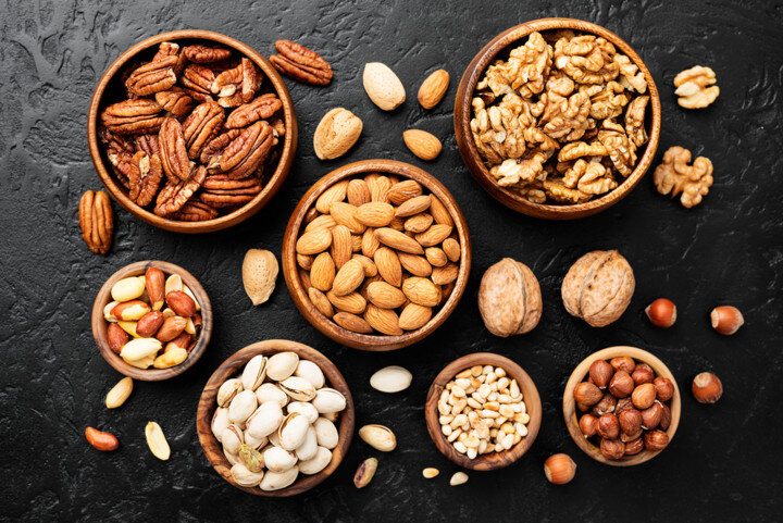 Что касается выбора орехов при похудении, то выбирайте миндаль, грецкие орехи, кешью, фисташки, арахис и кедровые орехи. Так, миндаль считается лучшим орехом для похудения за счет высокого содержания клетчатки и белка, Омега3. Горстка кедровых орехов способствует образованию гормона, который подает сигнал мозгу о насыщении.