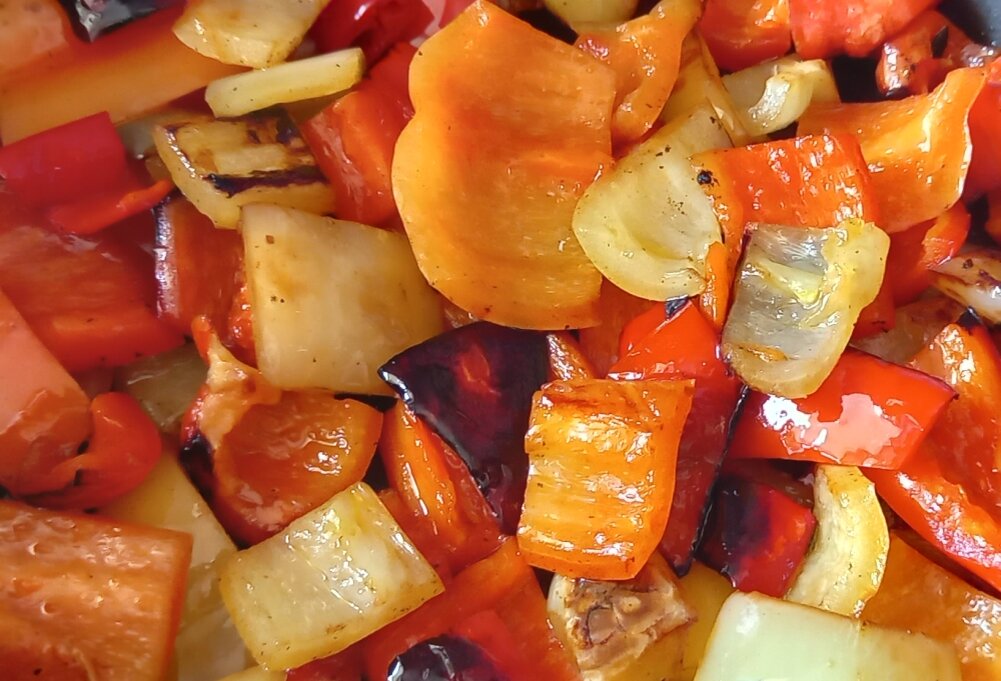Красиво же? И вкусно. Сезон овощей в разгаре и еще некоторое время продлится. Надо наестся на целый год. Сырые овощи, конечно, полезны и некоторые очень вкусны. И можно в каком-то месте понять сыроедов. Но не каждый овощ вкусно грызть сырым, и даже если какой-то вкусно, то жаренный он может оказаться еще вкуснее. Можно много спорить о пользе исключительно сырых продуктов, но для начала сыроеды должны предъявить репрезентативное количество 120-летних своих последователей. А до тех пор буду как есть салатики из сырых овощей, так и салатики из жаренных. Прошу прощения, если задеваю чьи-то чувства. Итак, жаренные овощи. Какие? На этот раз у меня есть баклажаны, перец сладкий и острый, лук, морковь, чеснок и петрушка. Все что надо для щастья! И еще есть один мой секрет, как сделать такой салат не просто вкусным, а ооооочень вкусным. Овощи нужно обжаривать на сильном огне по отдельности и смешать их только в готовом виде для последующего поедания. Никакой мешанины в сковородке, только по отд