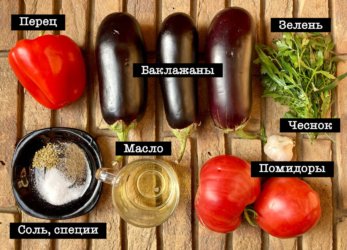 Кто-то называет эту икру одесской, кто-то бакинской, кто-то турецкой. Интерпретаций много, но для начала приготовим по самому простому рецепту, а потом можно проявить фантазию и что-то добавить от себя, а что-то, может, и убрать. Без долгого тушения, стерилизации и длинного списка ингредиентов. Просто приготовил и съел — хоть каждый день, пока свежие овощи в изобилии. Ингредиенты для «живой» икры из баклажанов Такую икру еще называют «сырой», потому как тепловой обработке тут подвергаются обычно только баклажаны, остальные овощи используют сырыми. Понадобится следующее: Полный список ингредиентов: 3 средних баклажана; 1 мясистый болгарский перец; 2 крупных помидора; 3-4 зубчика чеснока; небольшой пучок зелени (кинза и/или петрушка); растительное масло (по вкусу); соль и любимые специи. Это классический набор ингредиентов для «живой» икры. При желании вы можете что-то добавить или убрать: лук, уксус и даже плавленный сыр — инициатива приветствуется! Интересную интерпретацию я нашла