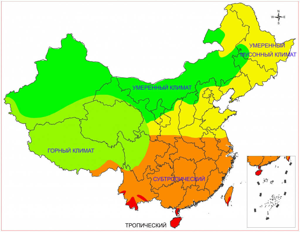 Меня , конечно, интересуют теплые зоны , те где теплое море, практически нет зимы и светит солнышко. Ну люблю я тепло, наверное в прошлой жизни я жила в Африке))) Но изучим климат всего Китая, может кому то понравится другая климатическая зона. И так... Китай имеет достаточно большую территорию и соответственно несколько климатических зон. Географы выделяют шесть климатических зон Китайской Народной Республики: Самая комфортная для восприятия природная полоса. Не жаркое лето, умеренные зимние температуры (до -25), обширная растительность – что может быть лучше. Идеально подходит для любителей зимнего вида отдыха. В этом географическом поясе стоит отметить холодные зимы. В зимние месяца года температурные показатели устанавливаются -25 градусов по Цельсию и ниже. Погодные условия жесткие и суровые. Бурные таежные леса являются главной чертой природной полосы. Мягкая зима, довольно жаркое лето — вот главные атмосферные особенности области. Климат Китая в этом регионе позволяет выращивать