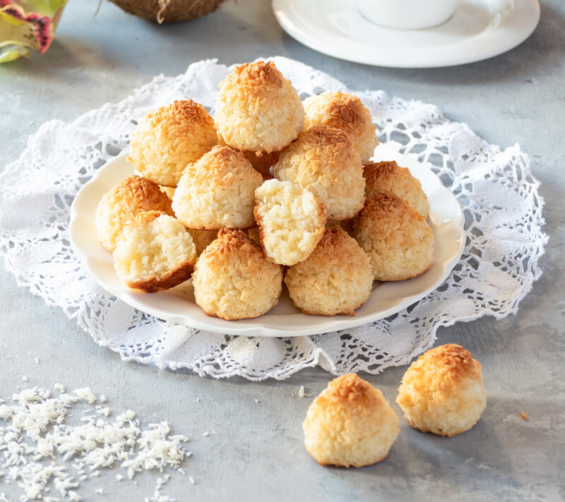 Печенье, похожее на современную кокосанку, впервые замечено в записях VII века до нашей эры в Персии. В конце XIV века, рецепт печенья попал во Францию. Именно французские кондитеры придумали добавить в печенье кокосовую стружку. Шло время, все развивалось, менялось и появился современный рецепт печенья «Congolais», у нас это печенье известно под названием "Кокосанка". Готовится это необычайно вкусное печенье кокосанка всего из трёх ингредиентов, без добавления муки. Порадуйте своих домашних вкусной выпечкой! 1. Смешать кокосовую стружку, яйца и сахар. 2. Хорошо вымешать массу до однородности. 3. Сформировать из массы шарики (удобно это делать смоченными в холодной воде руками, тогда масса не прилипает к рукам). Выложить на противень, застеленный пергаментом. 4. Выпекать в прогретой духовке 20 минут при температуре