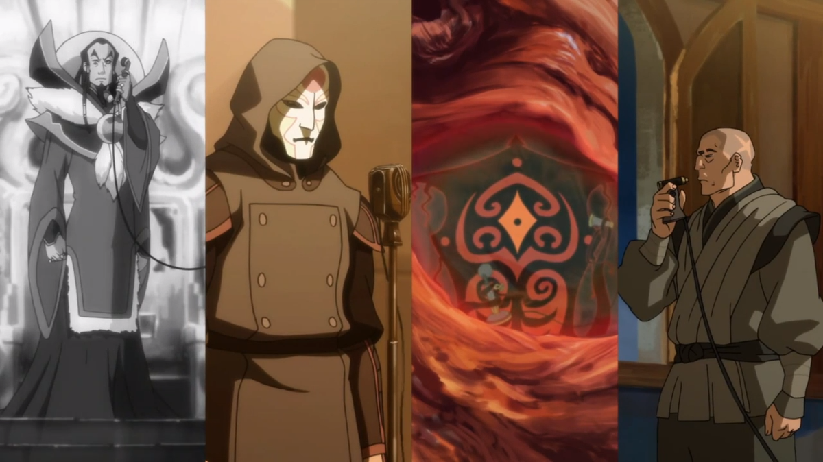 В "Легенде о Корре" от такого примитивизма решили отойти, и теперь антагонисты перестали быть злодеями в классическом понимании - непотребные поступки они совершают с искренней верой в то, что это приведёт к общему благу, лучшему миру и т.д. Правда, как бы авторы ни старались (если, конечно, старались), как следует раскрыть кого-то, кроме разве что Кувиры, всё равно не смогли. Поэтому Кувире мы отдаём отдельную статью с полноценным психоразбором, а три предшествующих зл... кхм, неоднозначных антагониста, уместятся здесь с акцентом скорее на их убеждения, чем на их внутренний мир. Потому что внутренний мир был прописан достаточно поверхностно, зато они весьма ярко отражали социальные проблемы своего периода. Погнали.