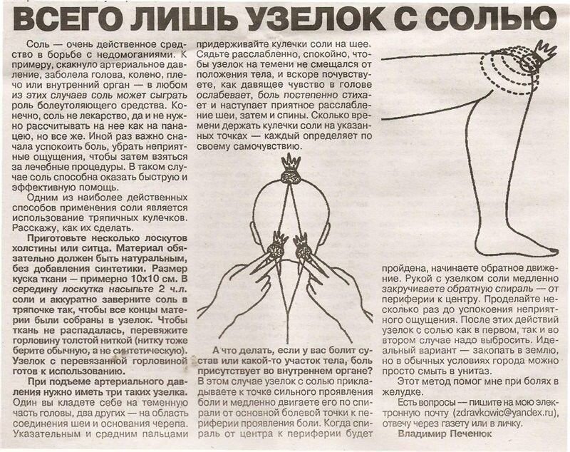 Вот, собственно, и все, чем хотелось бы поделиться. Если у вас проблемы, и вы не смогли их разрешить в медицинских учреждениях, попробуйте воспользоваться солевыми повязками. Метод этот вовсе не какая-то сенсация. Он просто-напросто был хорошо забыт.