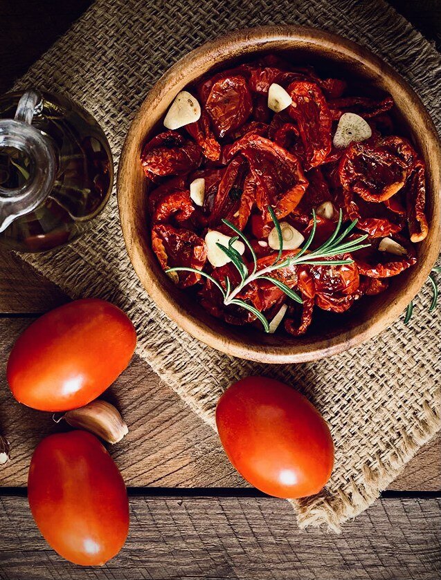 Здравствуйте, уважаемые читатели! Вяленые помидоры это очень полезная и вкусная закуска. Кроме того, их можно добавлять в салаты и первые, вторые блюда. Для того, чтобы помидоры получились более вкусными, стоит выбирать сочные плоды и не жалеть специй в процессе приготовления. Также стоит учитывать, что в процессе готовки помидоры сильно уменьшаются в размере. Поэтому чем больше вы хотите получить готового продукта, тем больше необходимо ингредиентов. Ингредиенты (банка 450 мл): помидоры ~ 1,5 кг масло растительное соль смесь перцев чеснок (у меня сушеный) травы (у меня приправа прованские травы) Способ приготовления: Вяленые помидоры можно готовить разными способами. Самыми актуальными является подсушивание в духовке или сушильном шкафу. Так как лето выдалось жарким, а процесс приготовления достаточно длительный, то мне больше по душе пришёлся вариант с сушилкой. Помидоры я нарезала пополам, разложила на противни в сушильном шкафу. Сверху каждую дольку присыпала солью и слегка про