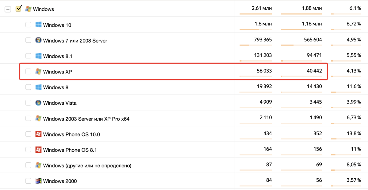 На днях Windows XP «стукнуло» 20 лет — первый релиз произошел 24 августа 2001 года. Уже вышла Windows 11, но это не останавливает сотен тысяч пользователей использовать Windows XP. Смотрю статистику своего канала за год — вот только те, кто живет преимущественно в России и читает мой канал с таких компьютеров: На самом деле пользователей Windows XP гораздо больше, ведь не все читают мой канал и многие даже не подключены к интернету. Рекомендую прочесть: Правила организации рабочего места, которые я соблюдаю Причины использования Windows XP в 2021 году: 👾 Windows XP — лучшая операционная система для старого железа. Да, с подбором программ придется повозиться, но полноценный рабочий компьютер для простых задач можно приобрести буквально за 500 рублей на всем известном сайте с объявлениями. К тому же, есть много интересного периферийного оборудования, которое до сих пор используется и может неверно работать с новой операционной системой. В моей практике, когда я был системным администрат
