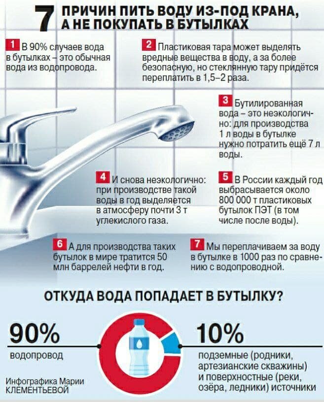 Самую большую опасность представляет вода из кулеров. «Это мировая проблема: для такой воды везде используется многоразовая тара. Чистота бутылок остаётся на совести производителей». Кроме того, в воде для кулера искусственно повышен уровень рН. «Делается это прозводителями для того, чтобы соли не выводили кулер из строя. При постоянном потреблении такой воды желудочно-кишечный тракт может стать уязвимым для паразитов». Куда полезнее и безопаснее пить просто воду из-под крана: чтобы её очистить от хлора, воду надо отстоять, а затем прокипятить или пропустить через самый простой домашний фильтр.
